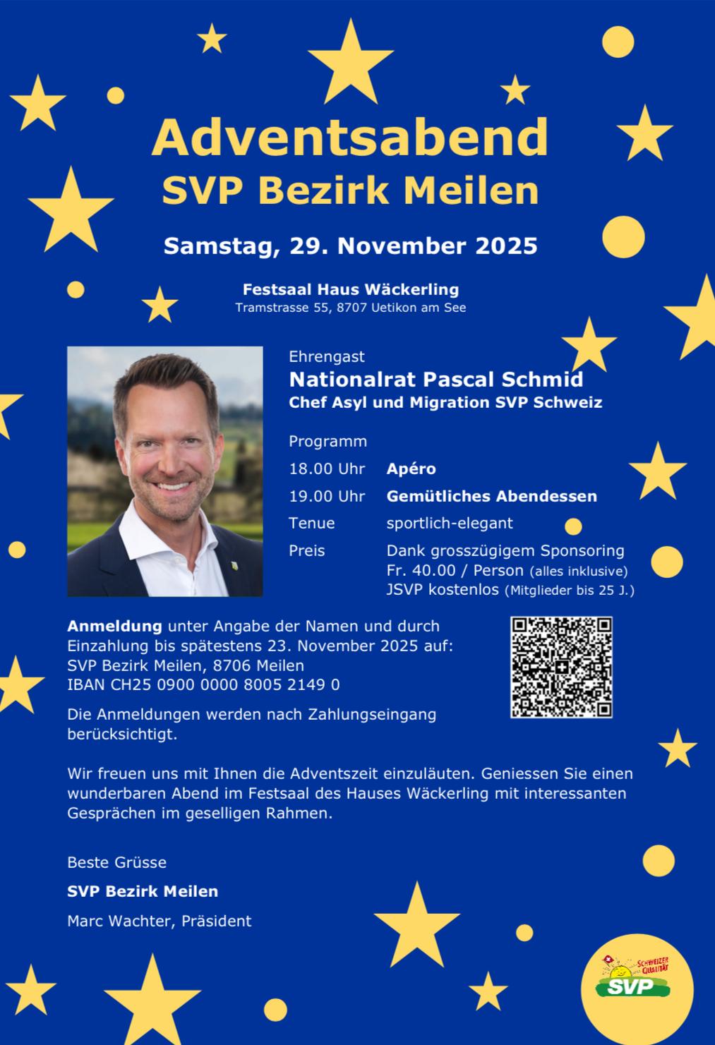 Adventsabend SVP Bezirk Meilen mit NR Pascal Schmid